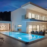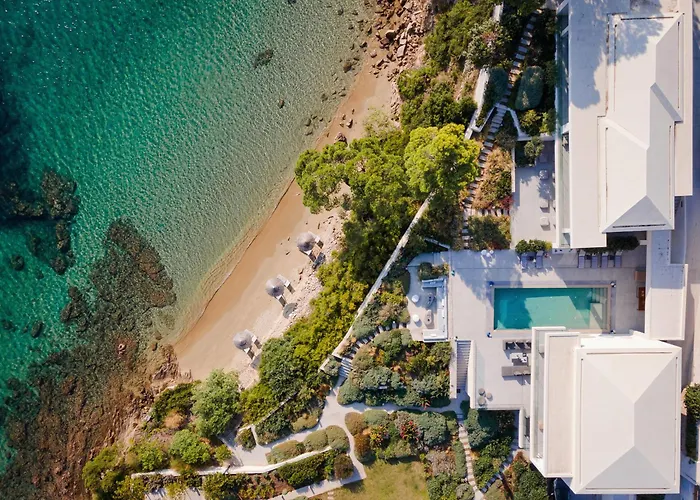 تقع في مدينة Achladies، Luxury Villas Skiathos توفر حوض السباحة لا متناهي وكذلك المسبح الخارجي الموسمي والشرفة والشاشة المسطحة مع القنوات الفضائية. الإقامة المواجهة للشاطئ تبعد 2.8 كم عن شاطئ دياماندي.